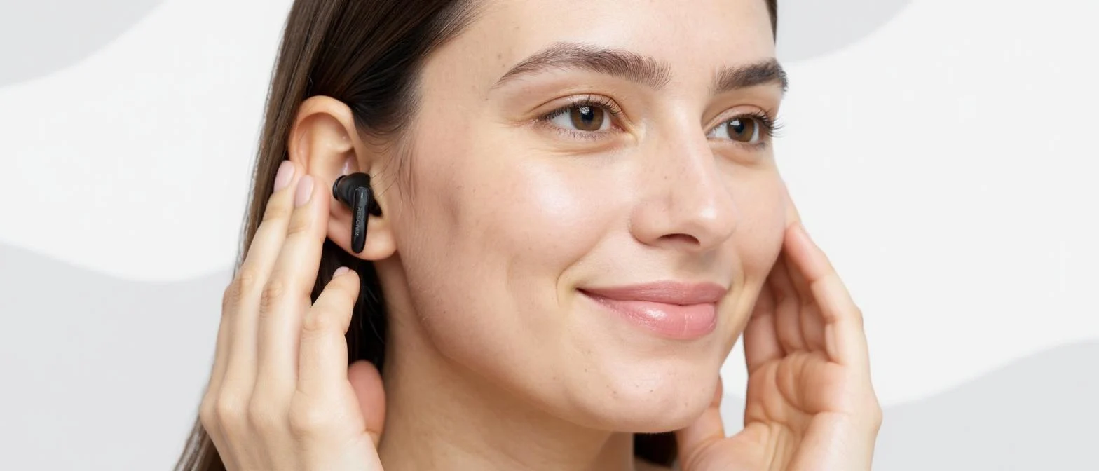 Resonix Pro earbuds are precision-weighted for perfect balance and a secure, natural fit. Four carefully sculpted ear tip sizes rest gently in the ear concha, creating a comfortable seal that enhances noise isolation and keeps the earbuds firmly in place — no slipping, no fatigue, just all-day comfort.